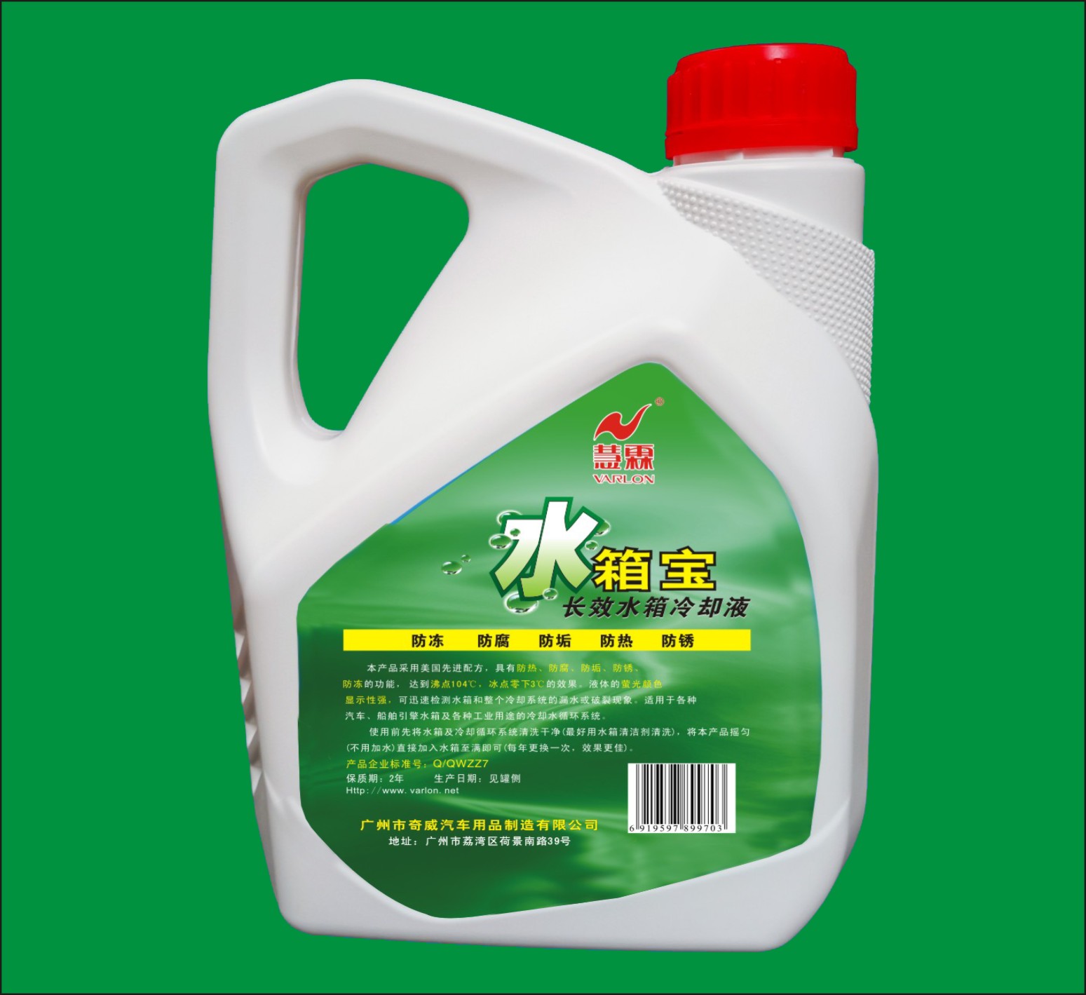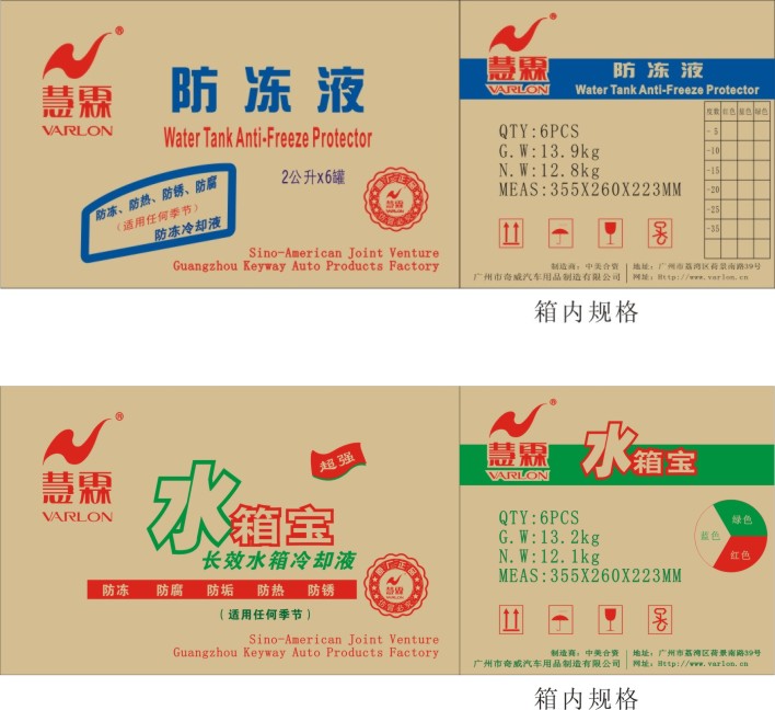 性能與用途:本產品采用美國先進配方,具有防熱、防銹、防沸、防腐、防凍的功能,達到沸點104℃,冰點零下3℃的效果。液體的螢光顏色顯示性強,可迅速檢測水箱和整個冷卻系統的漏水或破裂現象。適用于各種汽車、船舶引擎水箱及各種工業用途的冷卻水循環系統。